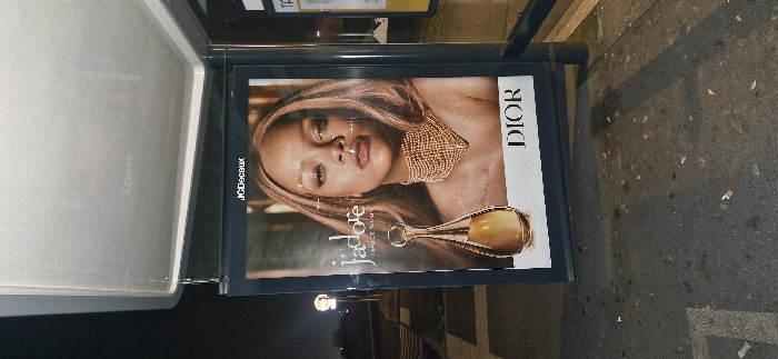 - "A Dior J'adore advertisement is displayed inside a bus shelter" by FM-uLzcF2, licensed under CC BY 4.0