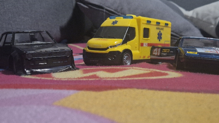 - "The scene, located in Melle, Belgium, presents three stationary toy vehicles arranged horizontally on a patterned textile surface" by FM-vGj3T2, licensed under CC BY 4.0