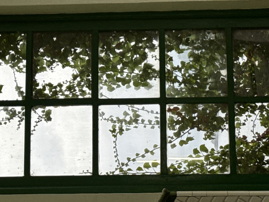 - "The image presents a fixed-frame window, comprising six rectangular panes (three across, two down), enclosed by dark green muntins and a central mullion" by FM-PDjLC3, licensed under CC BY 4.0
