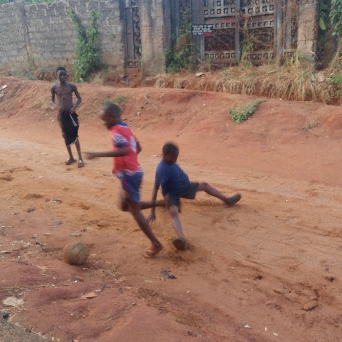 - "Three young boys are playing on a dirt road in front of a gated building" by FM-NMmnI2, licensed under CC BY 4.0