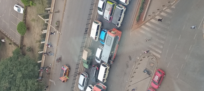 - "An overhead view depicts a heavily congested urban street scene on Uhuru Highway, near the University of Nairobi and the Central Business District (CBD) in Nairobi, Kenya" by FM-auFgD2, licensed under CC BY 4.0