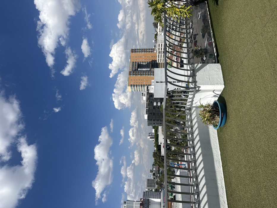 - "A view from a high-rise balcony features a cityscape under a blue sky with fluffy white clouds" by FM-EquHJ3, licensed under CC BY 4.0