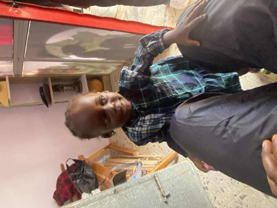 The image captures an indoor scene in Barakin Akawo, Nigeria, featuring a young child interacting with an adult