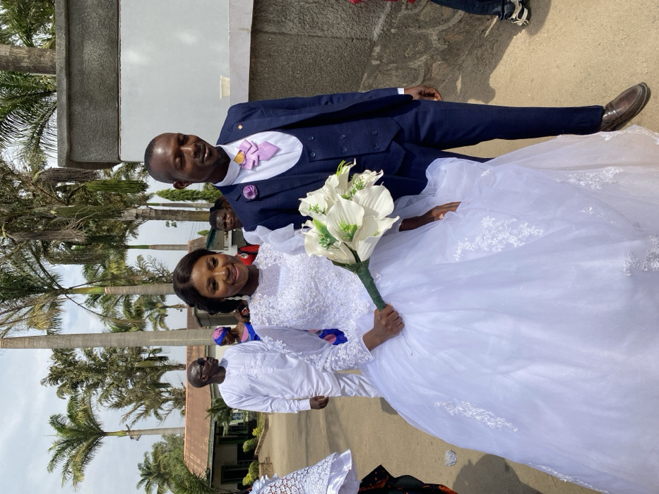 The scene depicts an outdoor wedding event in Bukuru, Nigeria, under bright daylight