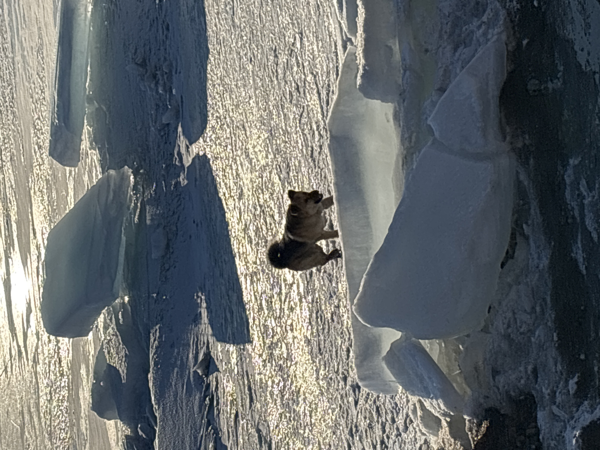 - "The image displays a tan and black dog, consistent with a Shiba Inu, actively navigating a frozen expanse of Lake Baikal near Listvyanka, Russia" by FM-Zp3et1, licensed under CC BY 4.0