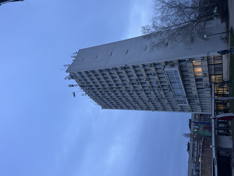- "The scene depicts the Municipal Building in Dimitrovgrad, Bulgaria, under an overcast, light blue-grey sky" by FM-lXaTH3, licensed under CC BY 4.0