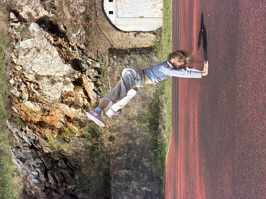 - "A full-length outdoor photograph depicts a young person performing a handstand on a reddish-brown athletic track in Grad Rijeka, Croatia" by FM-rE8HA3, licensed under CC BY 4.0