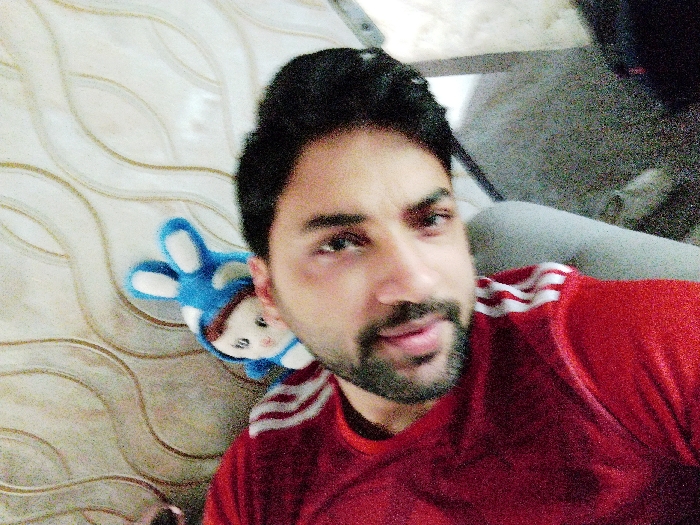 - "A close-up selfie shows a man with dark hair and a beard wearing a red shirt with white stripes on the shoulder" by FM-1AbS83, licensed under CC BY 4.0