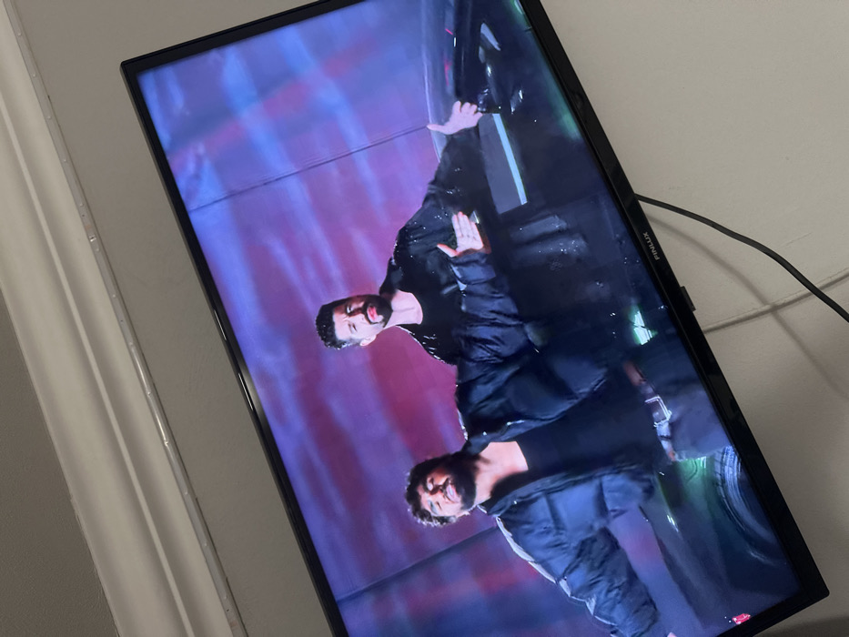 - "This image depicts a black flat-screen television displaying visual media content, positioned within an interior space in the city of Odarne, Bulgaria" by FM-yUlK62, licensed under CC BY 4.0