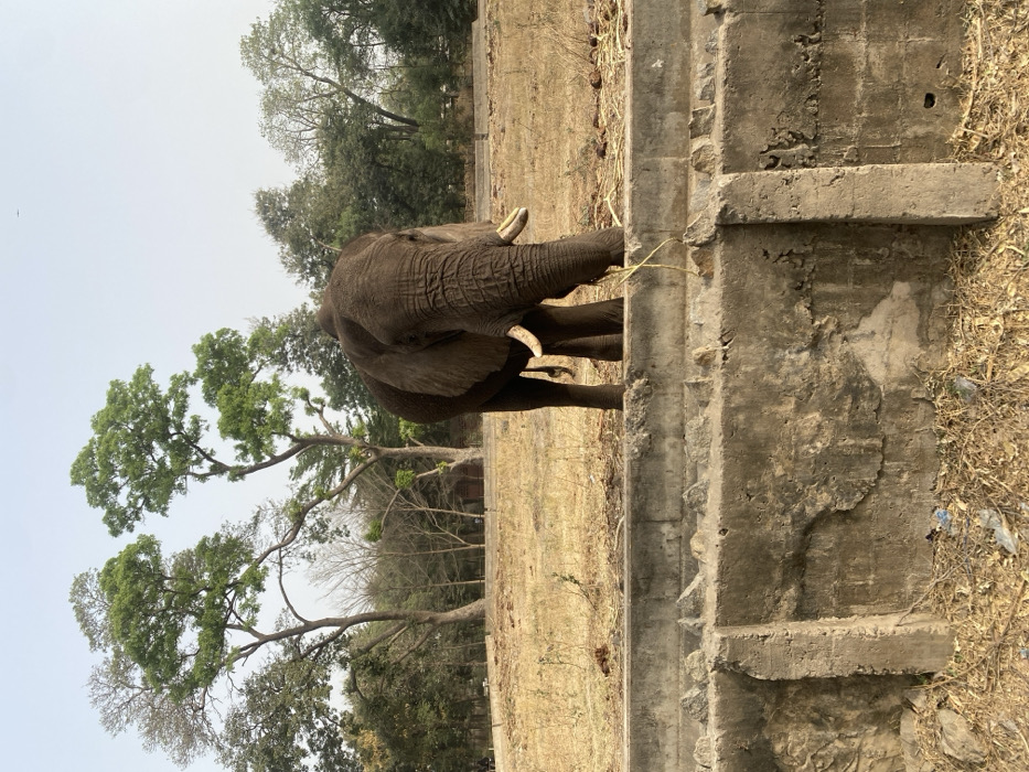 - "An elephant, positioned near a weathered concrete structure, extends its trunk over the wall" by FM-AjSvv2, licensed under CC BY 4.0