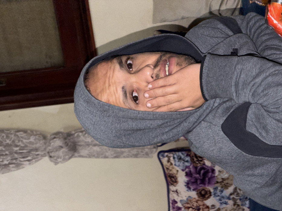 - "A man in a grey hooded sweatshirt is looking directly at the viewer with his hand covering part of his face" by FM-vA9lX2, licensed under CC BY 4.0