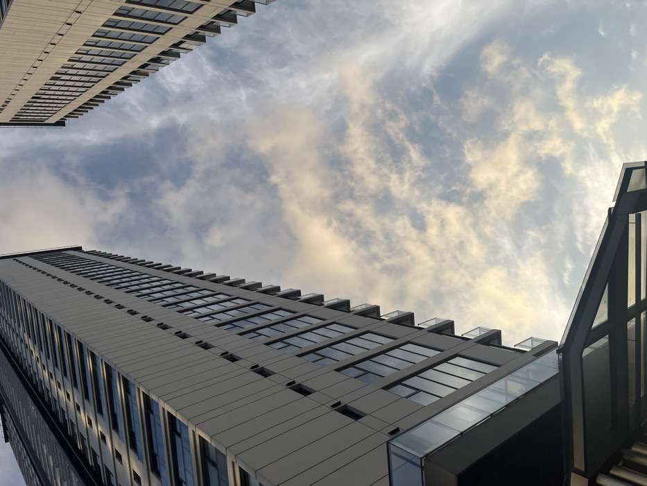 - "A low-angle shot reveals two modern high-rise buildings framing a sky filled with streaky, thin clouds" by FM-YNEAy2, licensed under CC BY 4.0