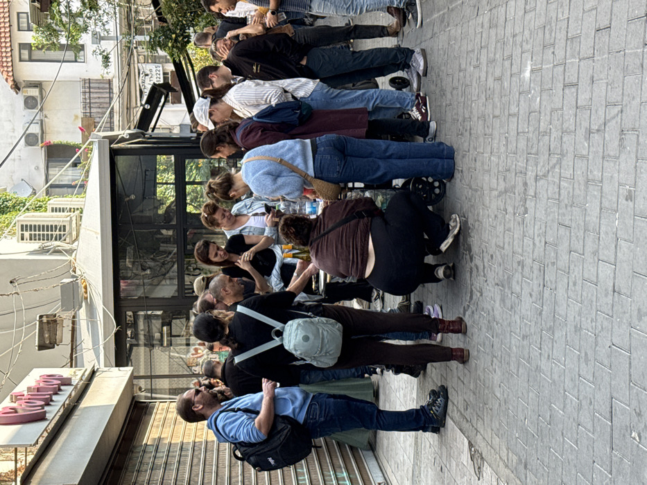 - "The image displays an outdoor scene in Tel-Aviv, Israel, specifically near Mendelson Street, featuring approximately 20-25 adults gathered on a grey paver-stone pedestrian surface" by FM-LMNxv1, licensed under CC BY 4.0