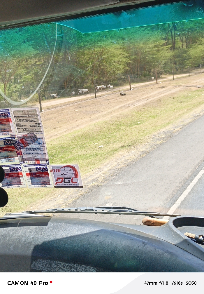 The image depicts a rural roadside scene in Malewa West ward, Kenya, captured from the interior of a vehicle