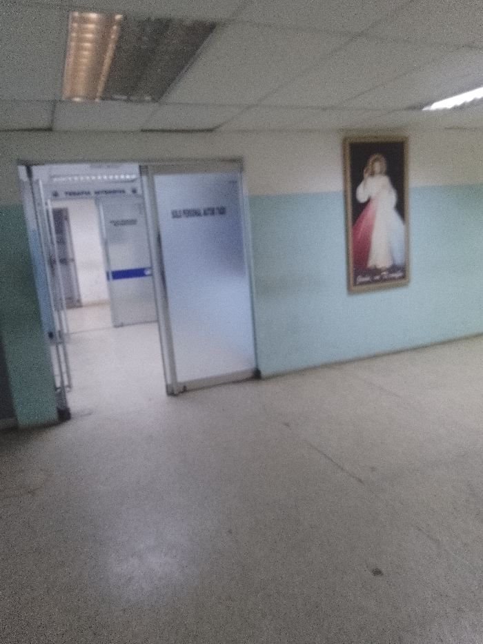 The scene depicts an interior corridor, likely within a medical or institutional facility in an unknown city
