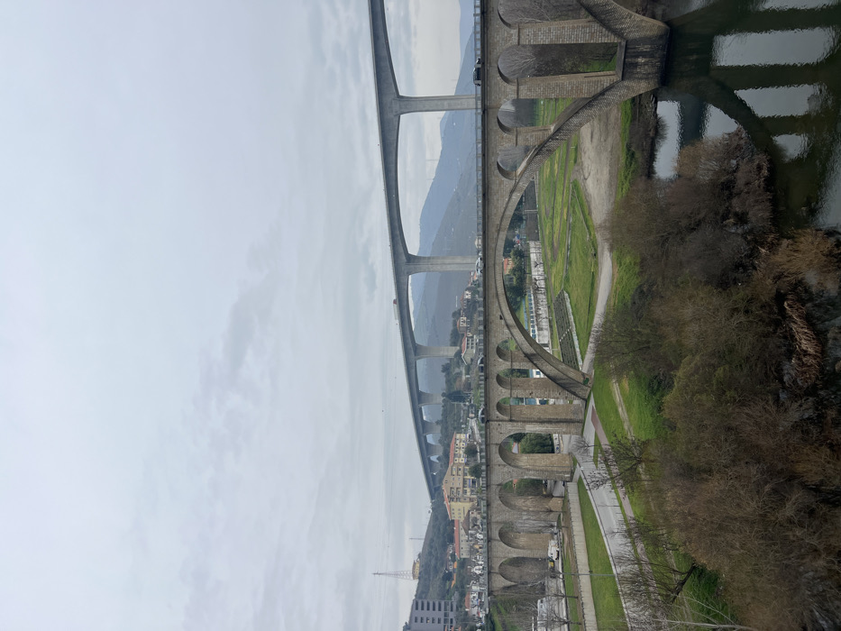 - "The image displays a panoramic view of the city of Peso da Régua, Portugal, characterized by multiple bridges and varied terrain under an overcast sky" by FM-XZbV72, licensed under CC BY 4.0