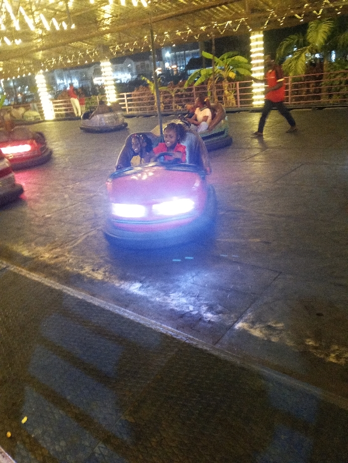 - "Two young girls are riding in a red bumper car with its headlights illuminated at night" by FM-q4R863, licensed under CC BY 4.0