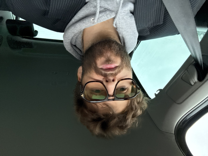 This image depicts a male individual seated inside a vehicle