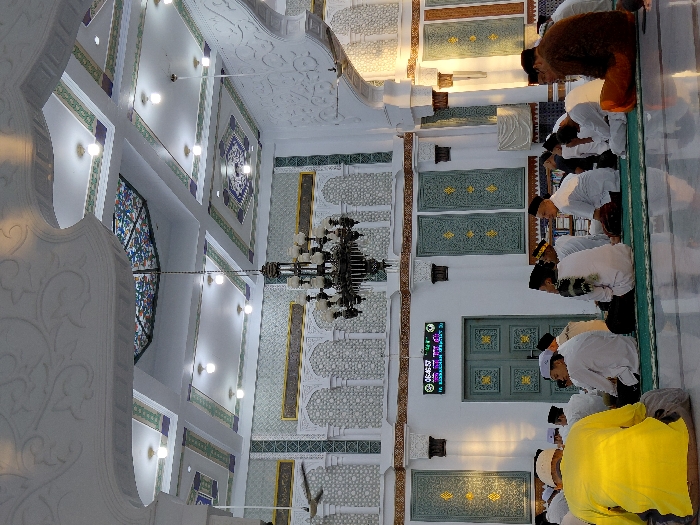 The image depicts the interior of a mosque in Banda Aceh, Indonesia