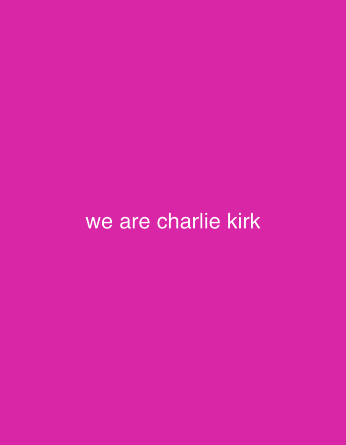 A square image features a vibrant, solid magenta background. Centered horizontally and vertically, the white text "we are charlie kirk" is prominently displayed. The text is in a clean, sans-serif font, creating a stark contrast against the background color. The simplicity of the image emphasizes the message.