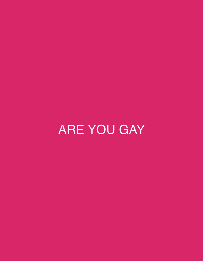 The image displays a uniform, solid fuchsia pink background. Centered horizontally and positioned approximately one-third of the way up from the bottom edge, white sans-serif text reads "ARE YOU GAY" in uppercase letters. No identifiable physical location in the city of Simeonovgrad, Bulgaria, is depicted within the image. There are no individuals, additional subjects, objects beyond the text and background, actions, or interactions present in the scene. The environment is entirely abstract, consisting solely of the specified color and text.