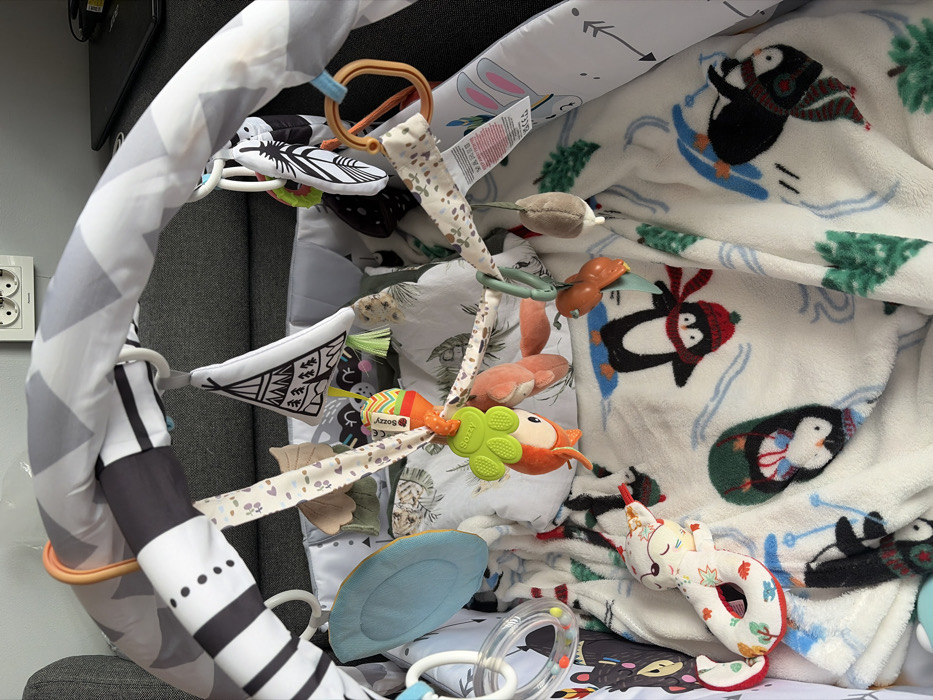 The scene depicts a baby play gym located in an indoor setting within Kavarna, Bulgaria