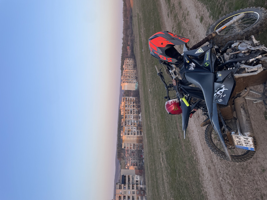 - "Two muddy off-road motorcycles are parked on a grassy dirt path in the foreground" by FM-JmTrD2, licensed under CC BY 4.0