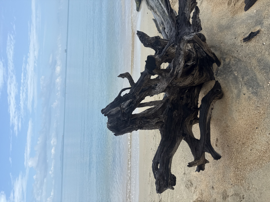 - "The scene depicts a large, dark, gnarled piece of driftwood positioned prominently on a light brown sandy beach in Tong Yang, Thailand" by FM-yKgTu2, licensed under CC BY 4.0