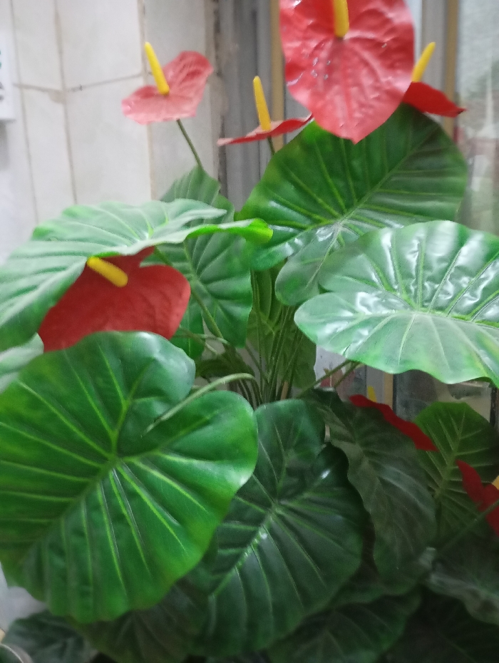 - "The scene, located indoors in Nasiriyah, Iraq, displays an artificial plant arrangement, likely anthurium" by FM-qjUs52, licensed under CC BY 4.0