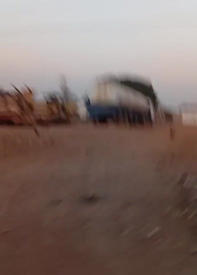 The video appears to be taken from a moving vehicle, passing by a roadside area with a variety of objects