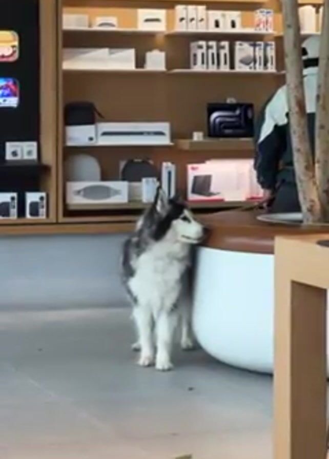 - "husky dog standing in what appears to be an Apple Store" by FM-n7ZCd2, licensed under CC BY 4.0