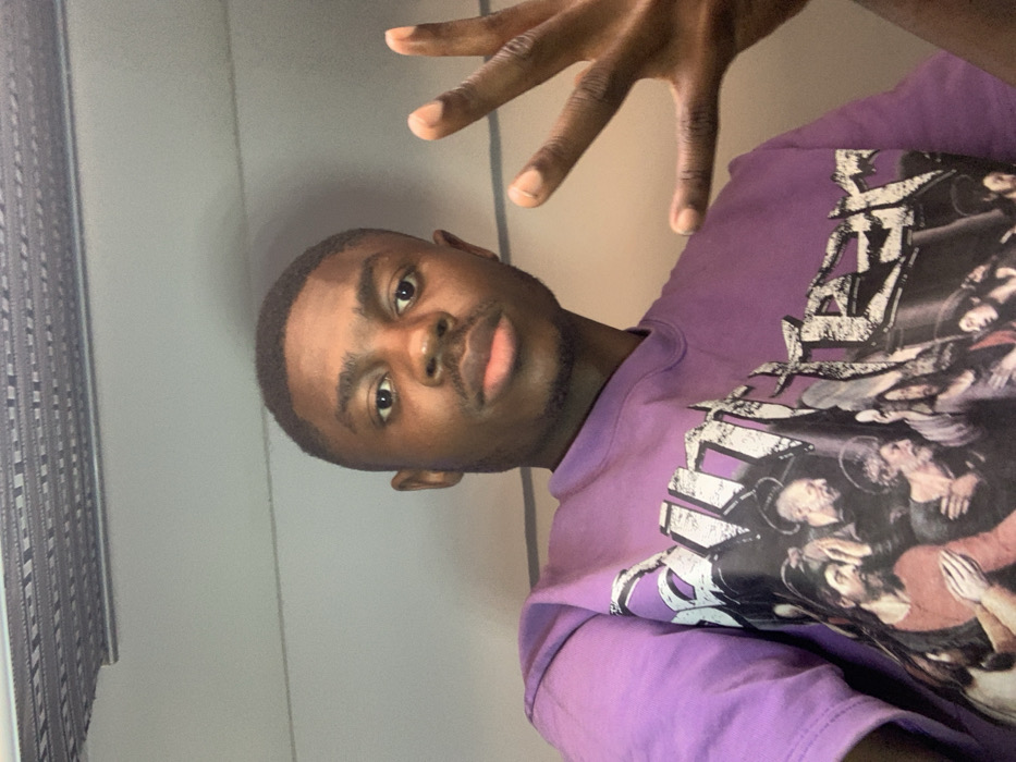 An individual, identified as a young Black male, is depicted in a close-up, front-facing photograph