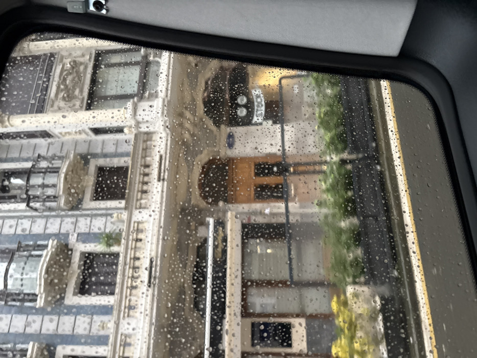 - "The image captures a street scene on Narrika Kalea 31 in San Sebastián, Spain, viewed from inside a vehicle through a rain-splattered window" by FM-E1hwL2, licensed under CC BY 4.0