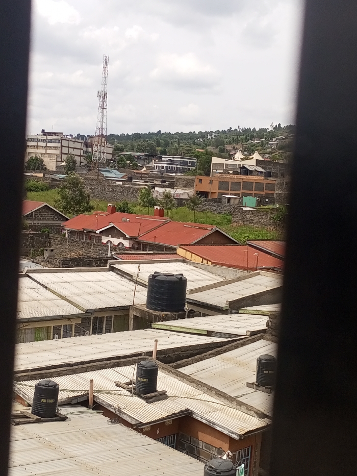 - "The image displays an elevated view of a densely developed urban landscape in Kiamaina ward, Kenya, observed through a vertical opening, indicated by dark vertical bars on the left and right edges" by FM-mZ1eg2, licensed under CC BY 4.0