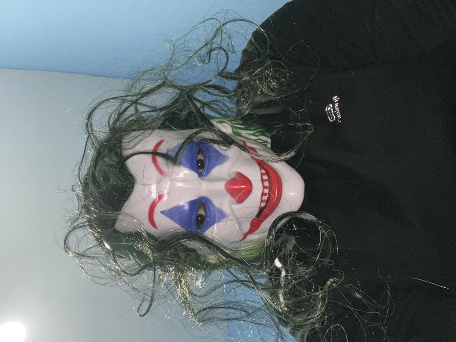 - "A person wearing a Joker mask with green hair lies on a light blue surface" by FM-HpdTa2, licensed under CC BY 4.0