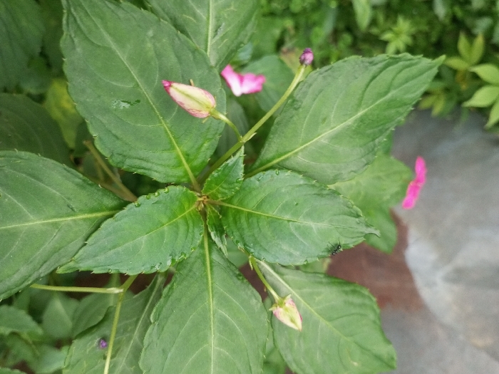 - "The image displays a close-up, top-down view of a green plant, likely a species of Impatiens" by FM-gOwsJ2, licensed under CC BY 4.0