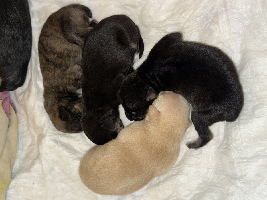 - "Four newborn puppies are observed sleeping on a white, textured blanket in an unspecified indoor location within the city of Avren, Bulgaria" by FM-FbDJJ3, licensed under CC BY 4.0