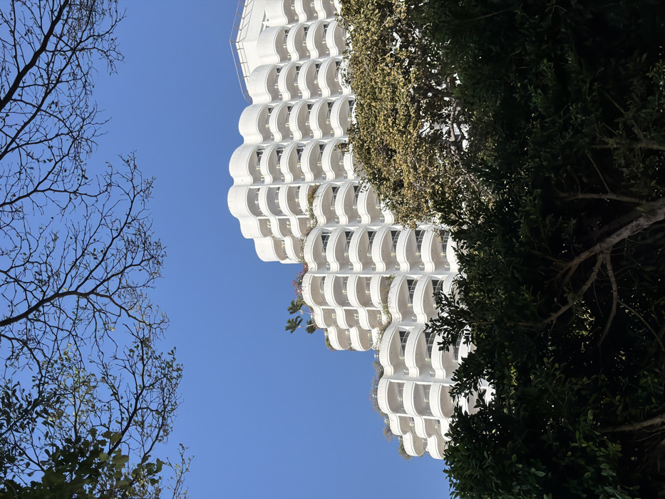 - "The image displays a multi-story, white building with distinctive wavy, terraced balconies, situated under a clear blue sky in Pattaya City, Thailand" by FM-PcEqo1, licensed under CC BY 4.0