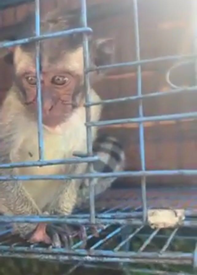 - "A small monkey is sitting in a blue wire cage, looking directly at the camera" by FM-xgQP92, licensed under CC BY 4.0