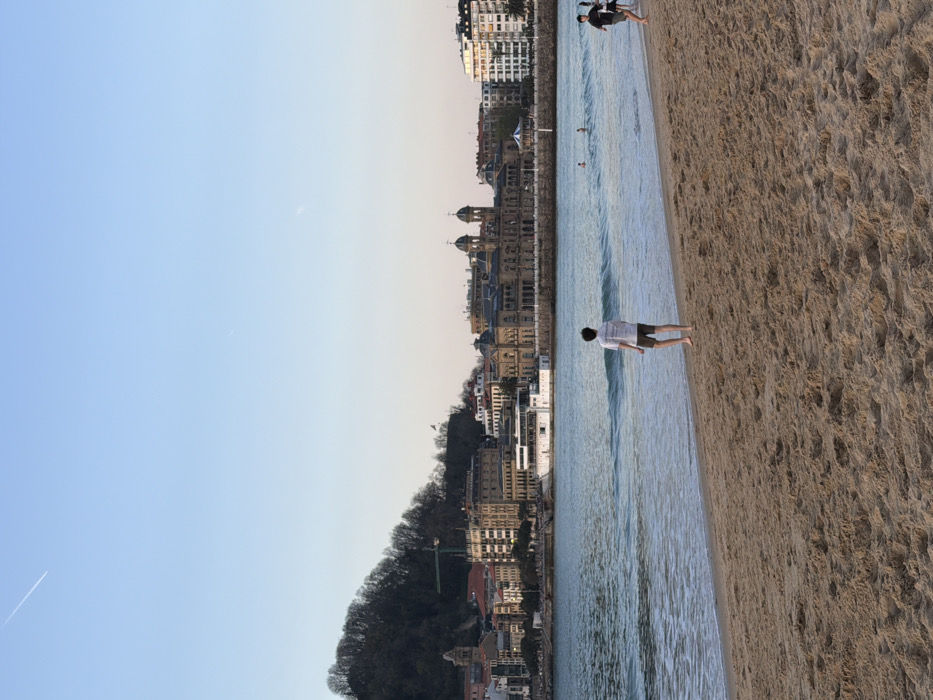 - "This image depicts a panoramic view of La Concha Bay and beach in San Sebastián, Spain, under a clear, light blue sky with a faint atmospheric gradient towards the horizon" by FM-aicyF2, licensed under CC BY 4.0