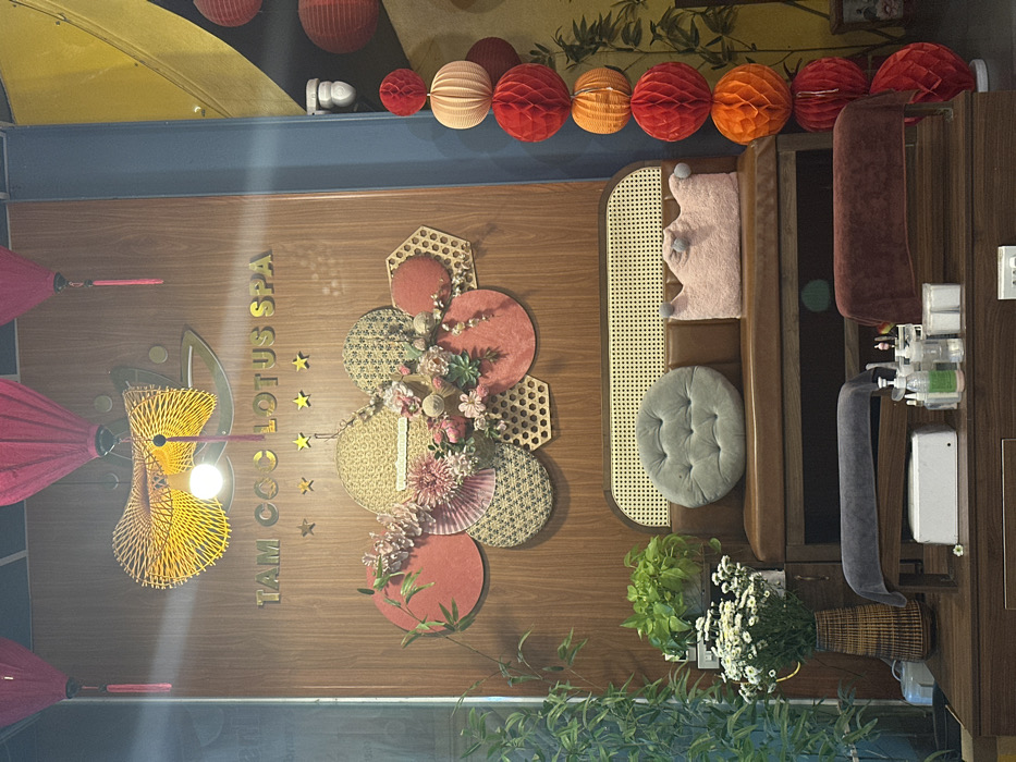 The image depicts an interior scene, identified as Tam Coc Lotus Spa, located in Nam Hoa Lư Ward, Vietnam