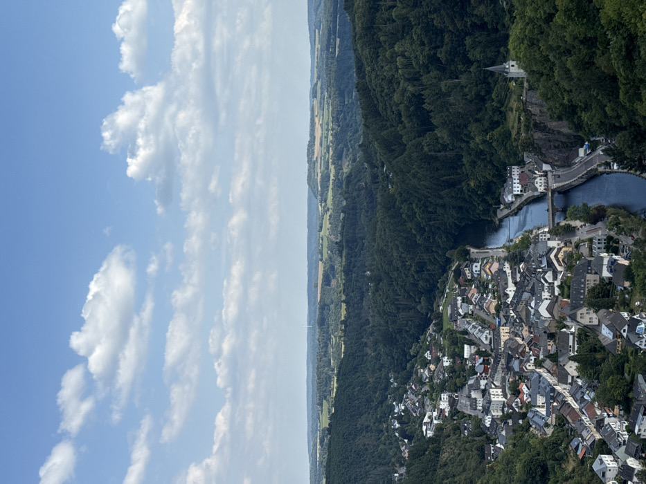 - "This is an aerial, high-angle view of the city of Vianden, Luxembourg, situated within a deep, forested valley" by FM-euyLP2, licensed under CC BY 4.0