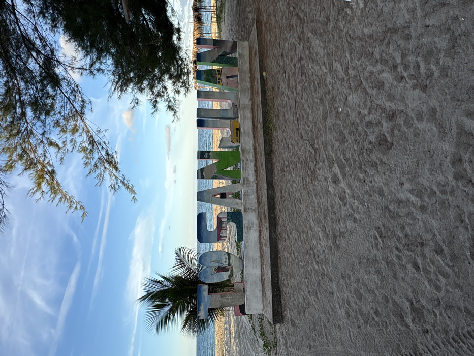 The image depicts a static scene on the San Juan beach in Tela, Honduras