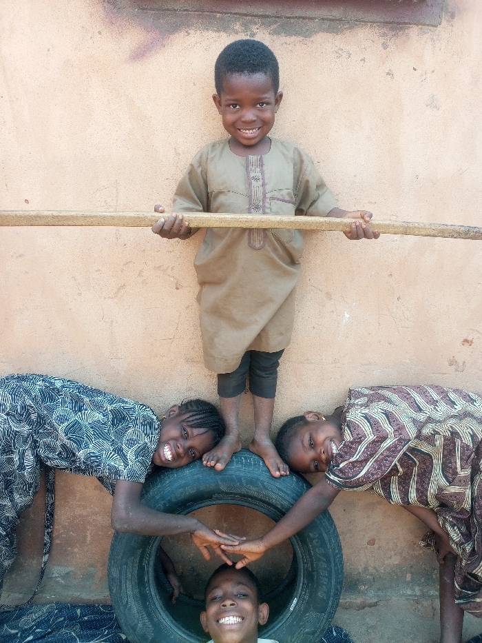 - "The image captures four children posing against a textured, light beige wall in Tempure, Nigeria" by FM-l9iEo2, licensed under CC BY 4.0