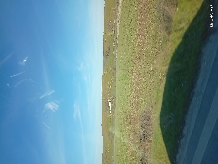 - "The image, dated March 11, 2026, at 16:15, captures a rural landscape in Duvanlii, Bulgaria, observed through a window, evidenced by visible reflections in the upper frame and a large, dark, amorphous shadow cast in the lower left and mid-foreground" by FM-c8BfR2, licensed under CC BY 4.0