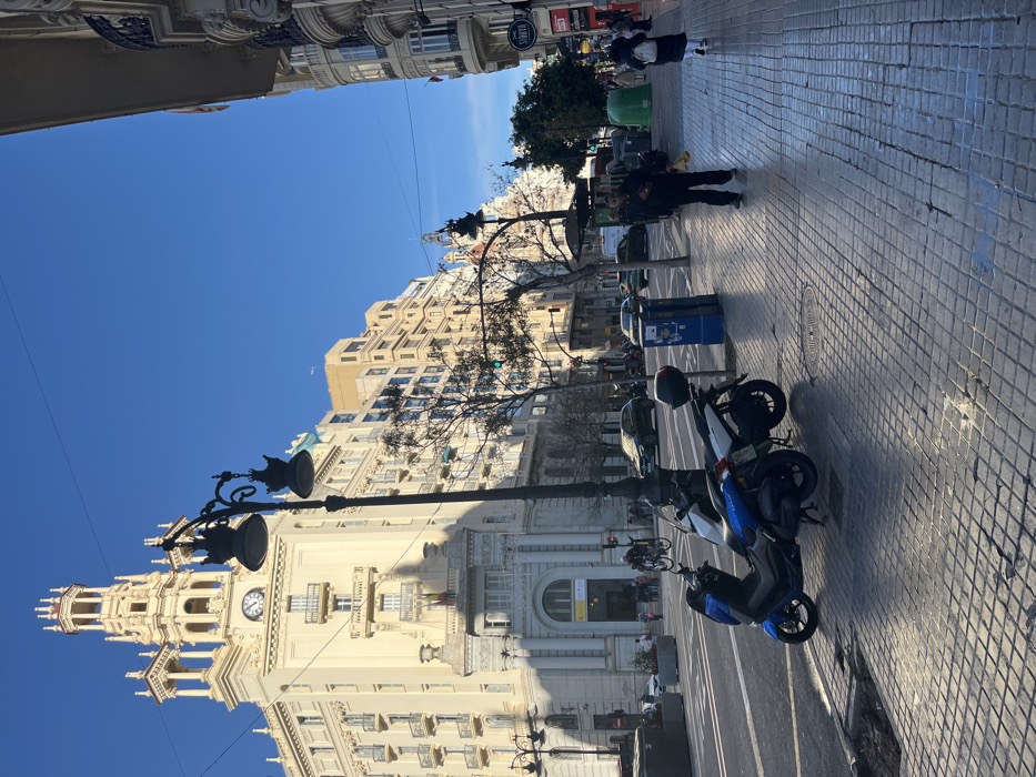 - "This image depicts a sunlit urban street scene in Valencia, Spain, specifically identifiable by the Palacio de Correos y Telegrafos (Central Post Office) building in the background on the left" by FM-pNWBR2, licensed under CC BY 4.0