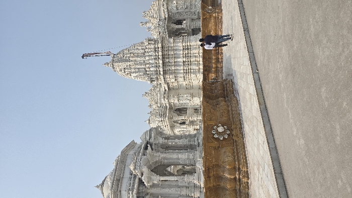 - "A tall, ornate white temple dominates the frame against a clear blue sky" by FM-70rZN2, licensed under CC BY 4.0