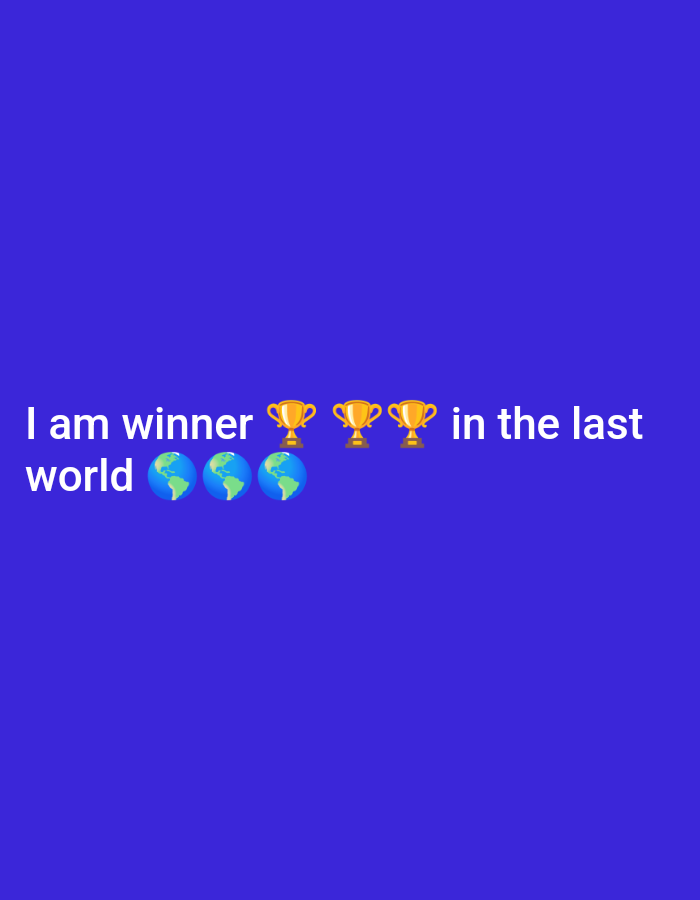 The image displays a text-based message on a plain, solid blue background. The message reads "I am winner 🏆🏆🏆 in the last world 🌎🌎🌎". The image has no discernible location.