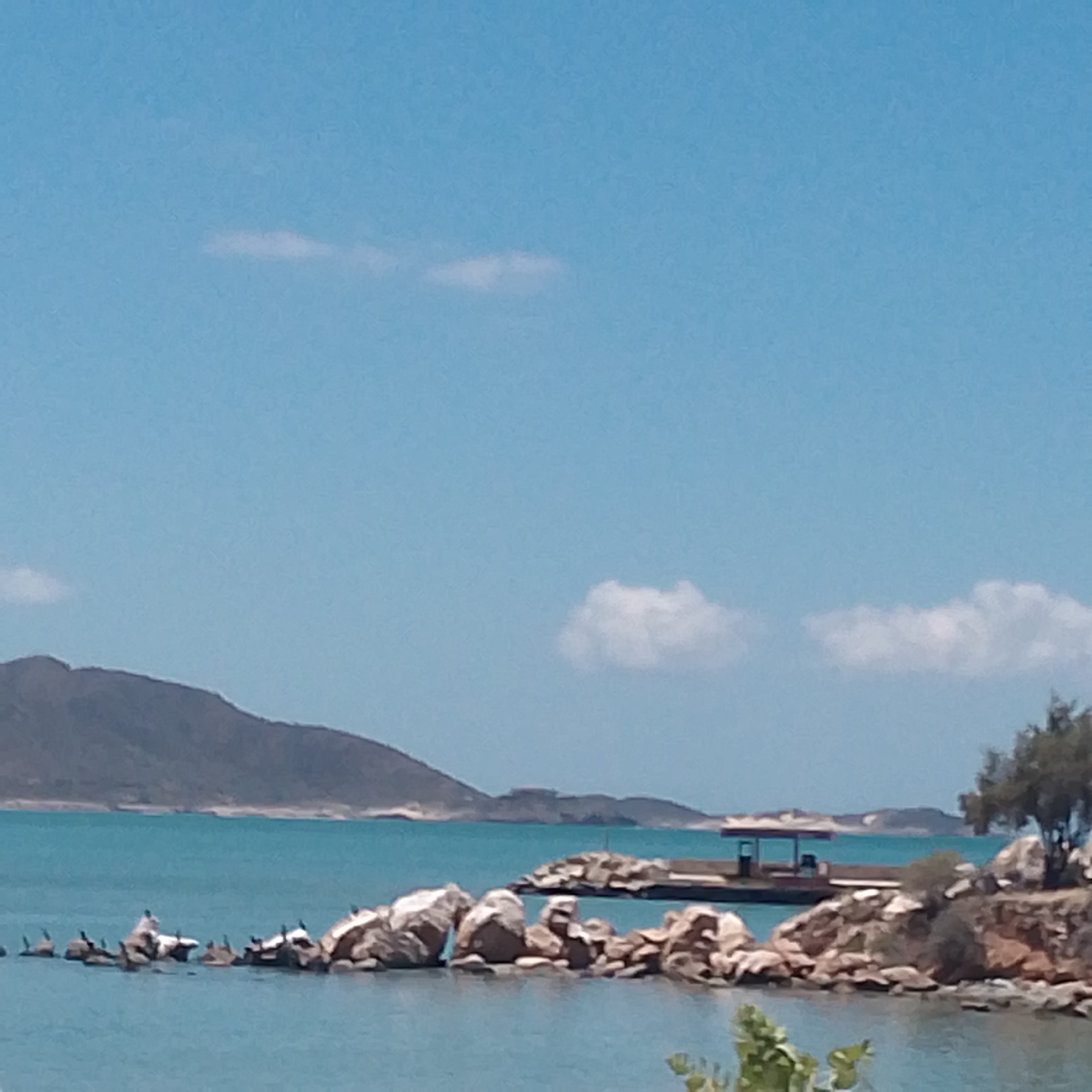 - "The scene depicts a coastal landscape in Juan Griego, Venezuela, under a clear, bright blue sky with sparse white clouds" by FM-eBBMp1, licensed under CC BY 4.0