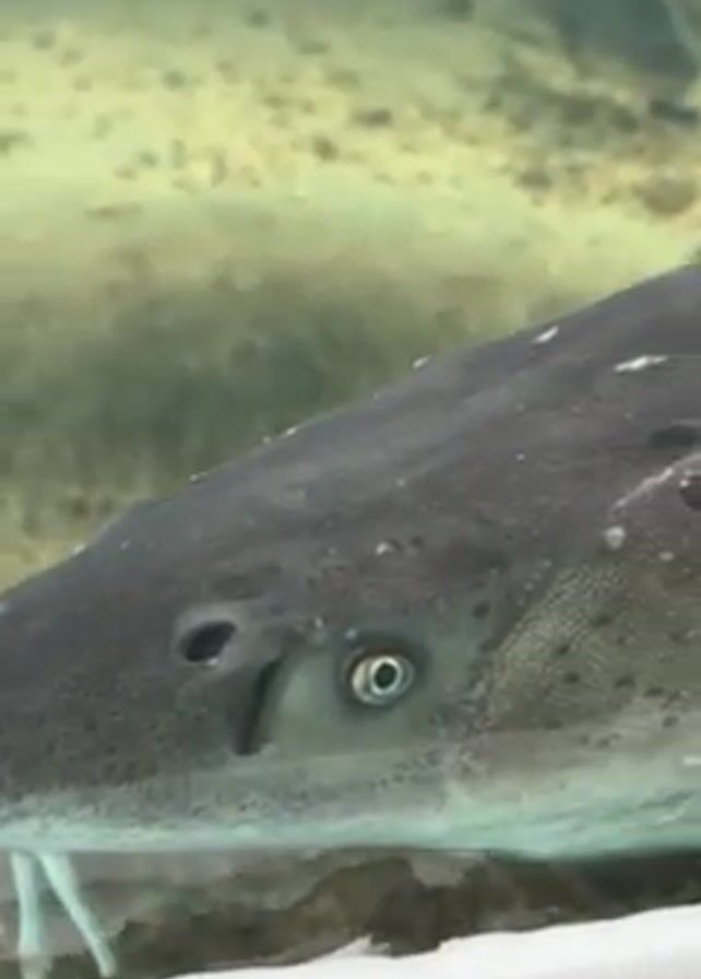 - "close-up of a sturgeon swimming in a large aquarium" by FM-RT39G3, licensed under CC BY 4.0